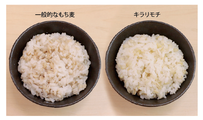 また、「キラリモチ」は麦独特のにおい・風味が少なく、味も白米のようにほんのり甘みがあり、お米に混ぜても、炊きたてごはんのおいしさを損ないません。