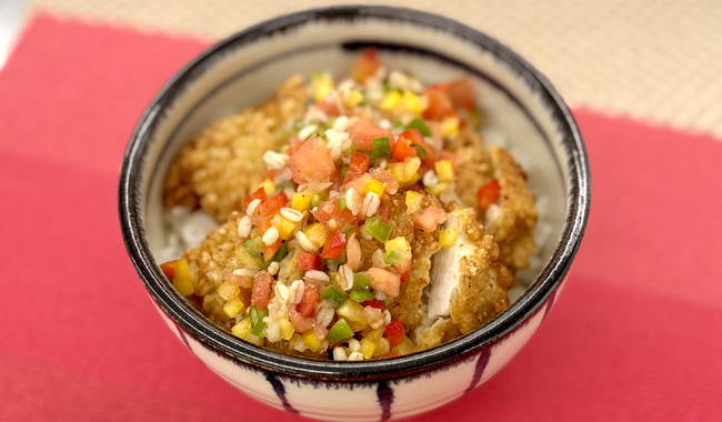 準グランプリ「もち麦衣のカツ丼~夏野菜のサルサソース~」來住 杏慈 さん(県立社高校2年生)
