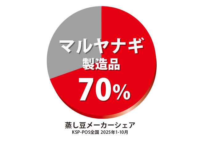 2004年に蒸し大豆を発売してからずっと、マルヤナギの蒸し豆は国内シェアナンバーワン。