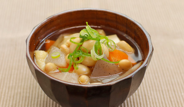 蒸し大豆入り具沢山けんちん汁