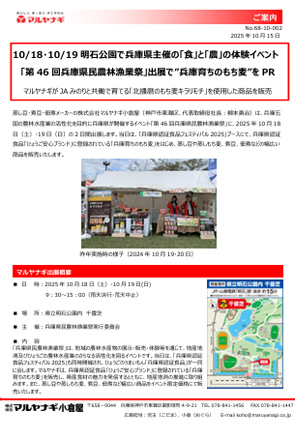 10/18・10/19明石公園で兵庫県主催の「食」と「農」の体験イベント「第46回兵庫県民農林漁業祭」出展で”兵庫育ちのもち麦”をPR